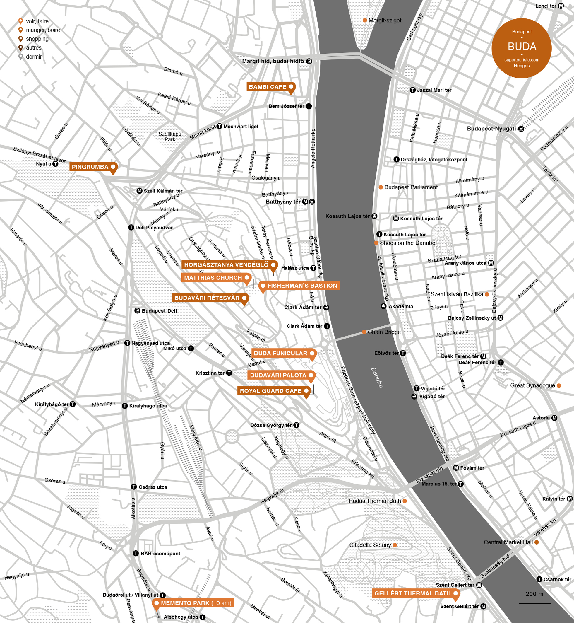 thumbnail, header, map, Fisherman’s Bastion, Matthias Church : supertouriste, Buda Funicular : Andrea Imre / Pixels, Anthony Kernich / Flickr, Buda Palota : Budapestinfo, Gellért Thermal Bath : accidentallywesanderson.com, itsalltriptome.com, Memento Park : myguidebudapest.com, hanslucas.com, John Stone1 / flickr, Manoo Mistry / flickr, Royal Guard Cafe : Royal Guard Cafe, Budavári Rétesvár : Настя Я / tripadvisor, Horgásztanya Vendéglő : Street Kitchen, Horgásztanya Vendéglő, Pingrumba : Balázs Mohai / hypeandhyper.com, Bambi Cafe : supertouriste